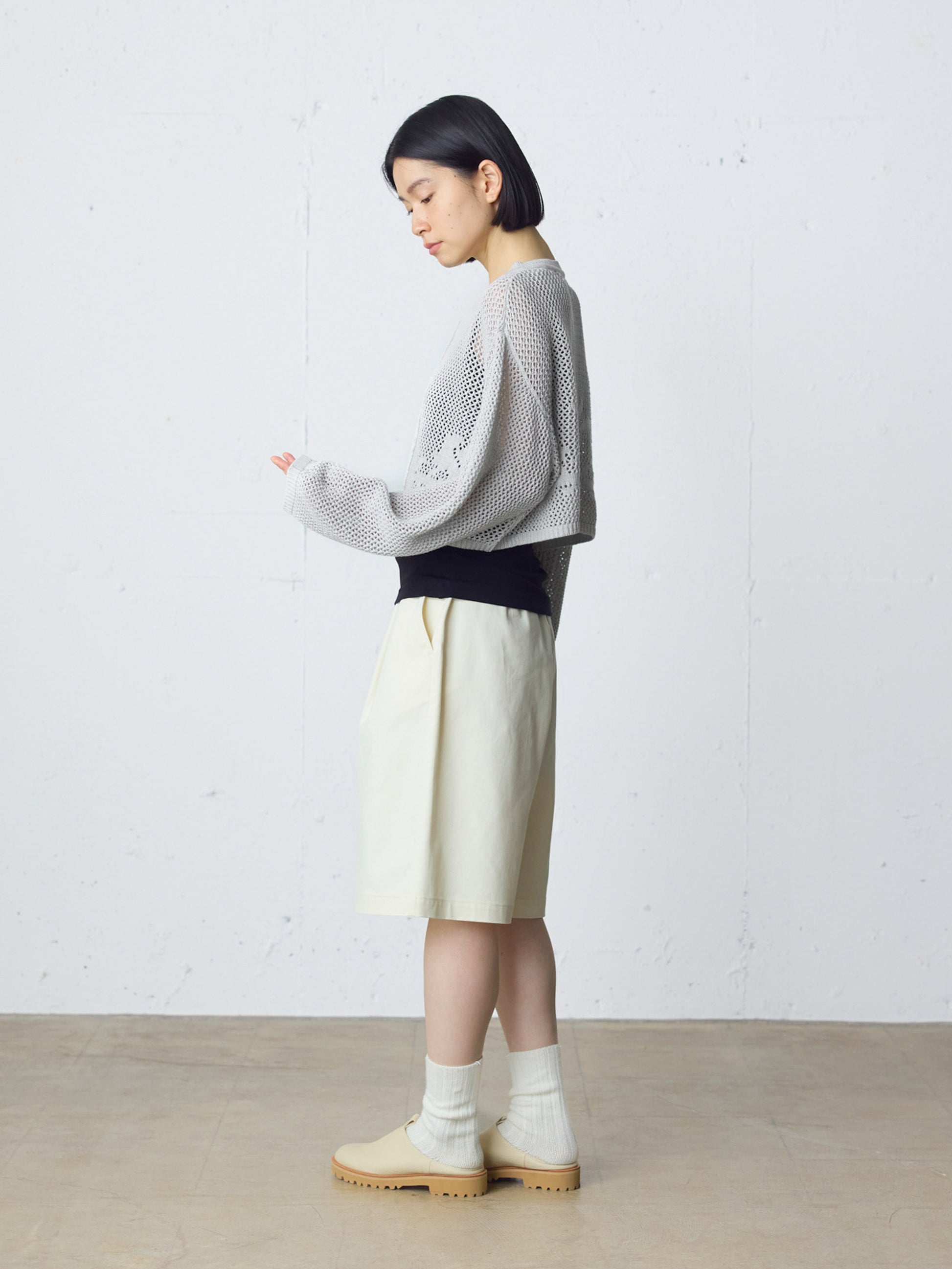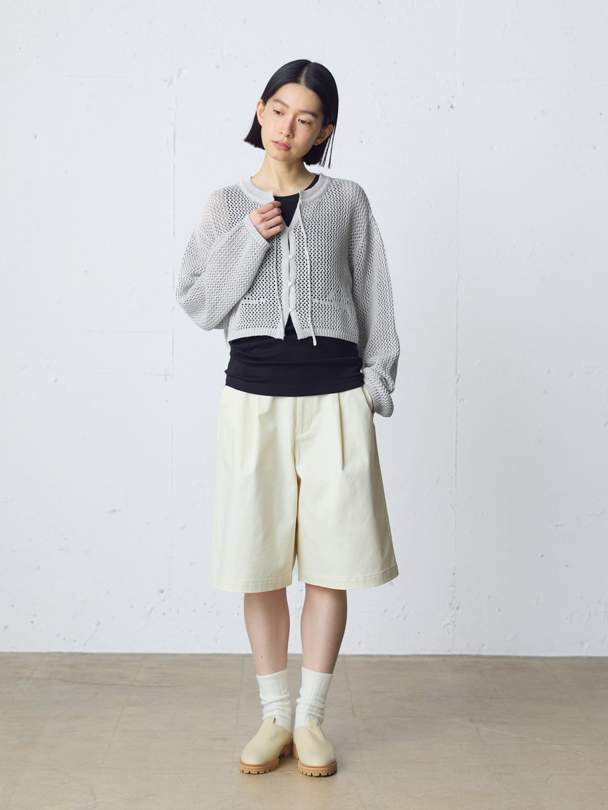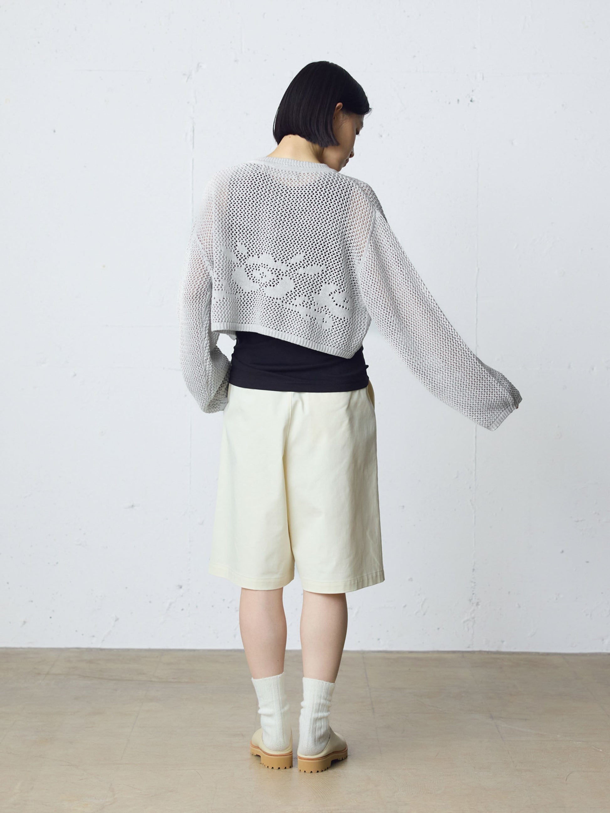 透け感を活かした編地が、軽やかで柔らかな印象を演出します。