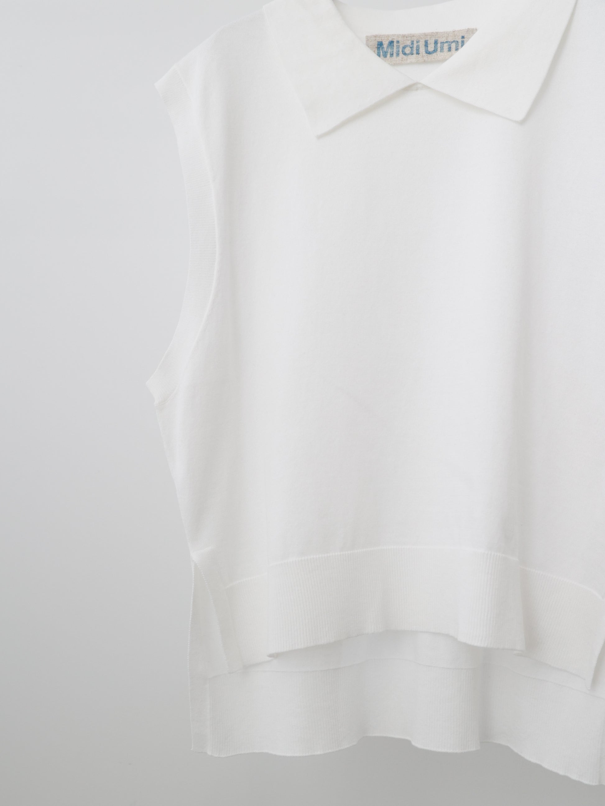 コンパクトなサイズ感のニットベストで、1枚着としてはもちろん、シャツやTシャツとのレイヤードにもお使いいただけます。