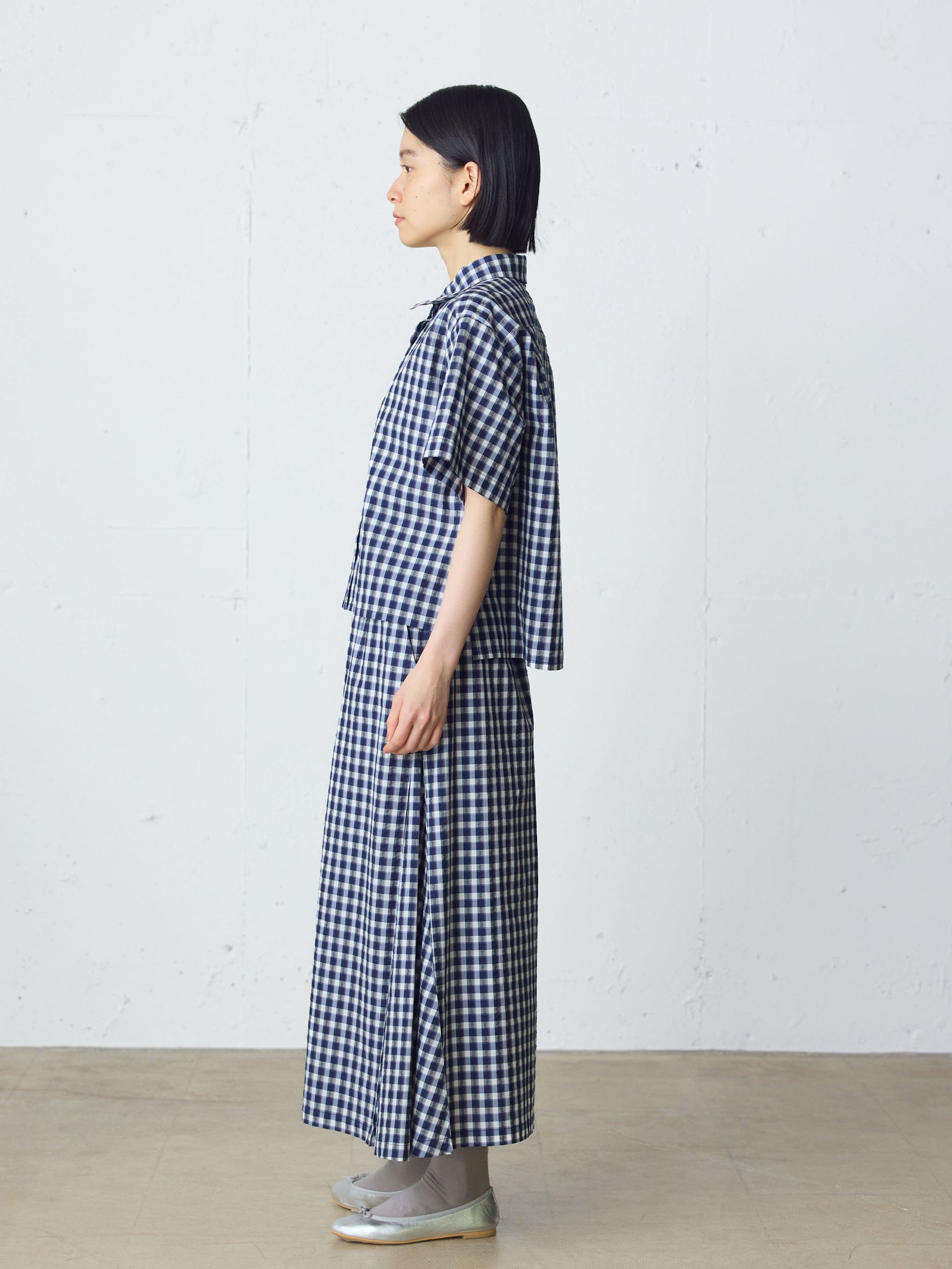 コットンサッカー素材を使用した、軽やかなチェックシャツ。