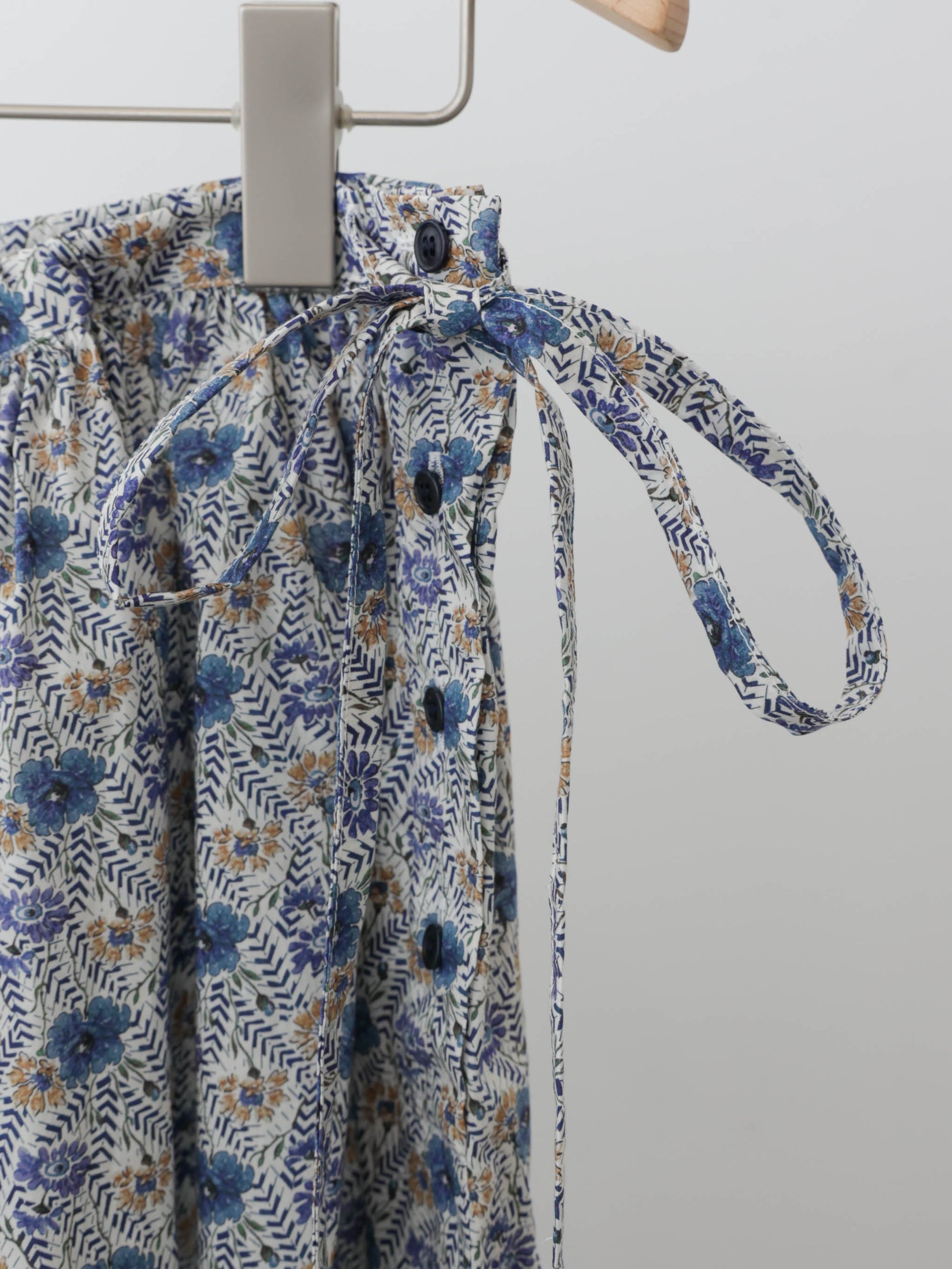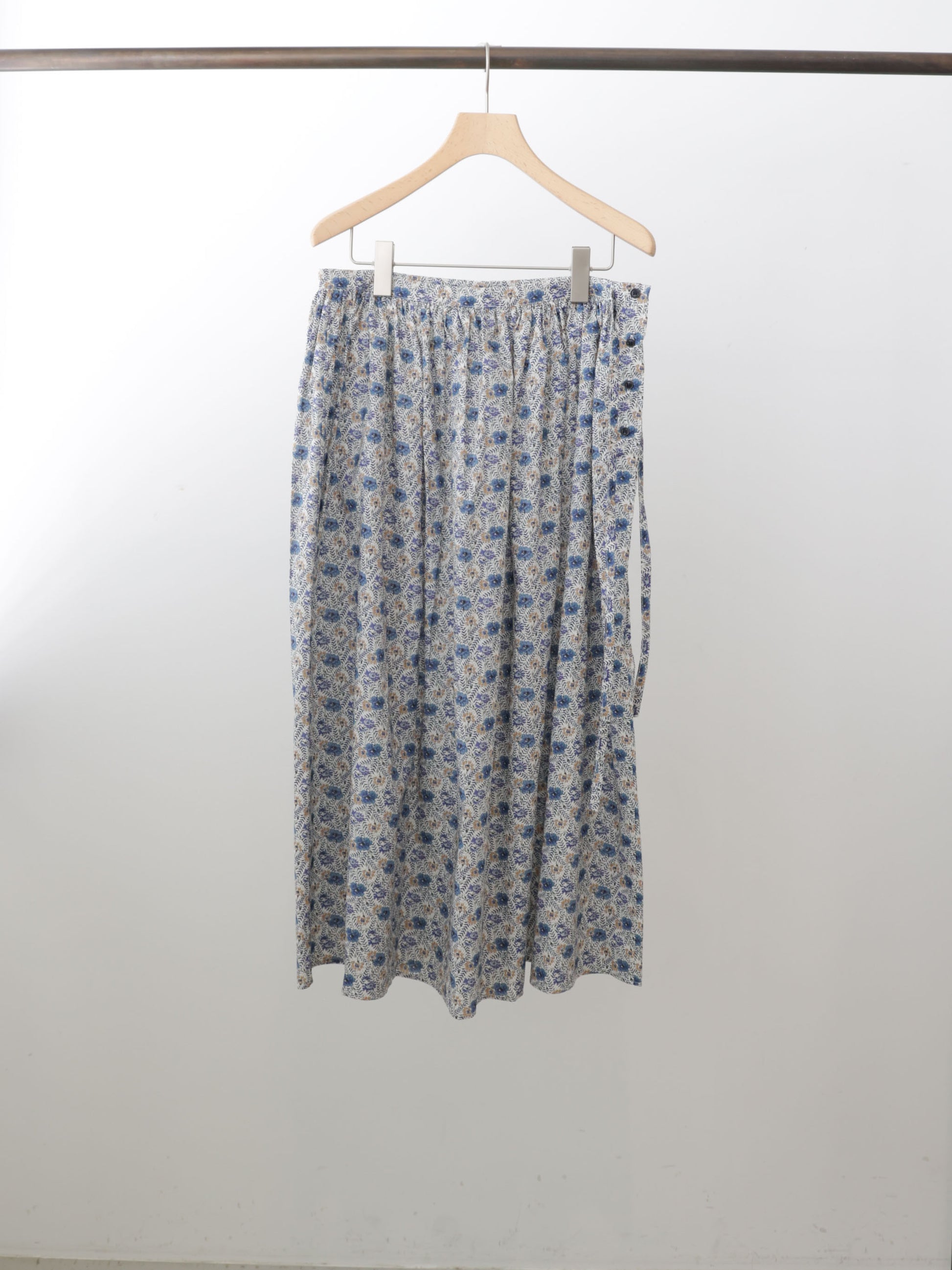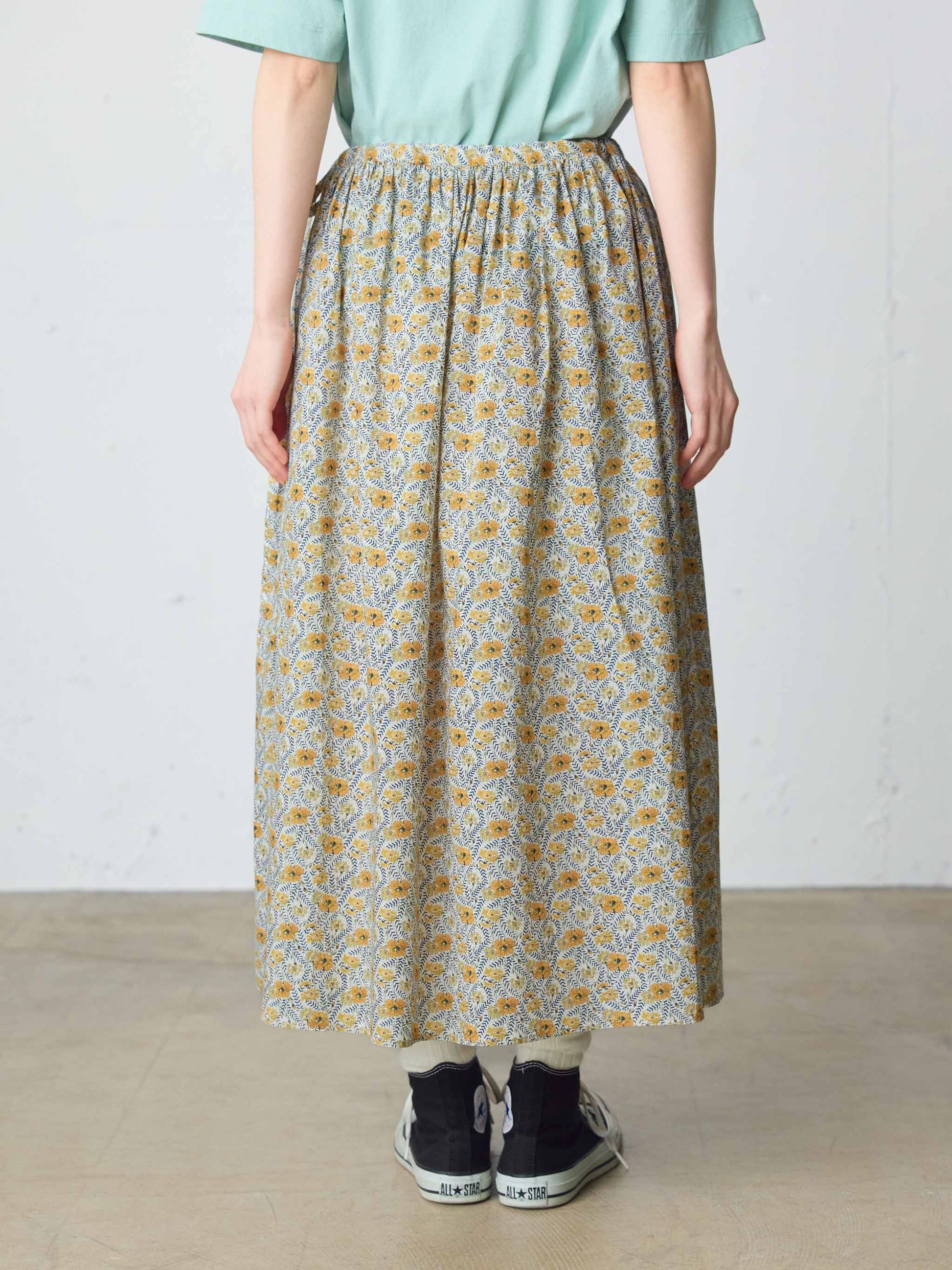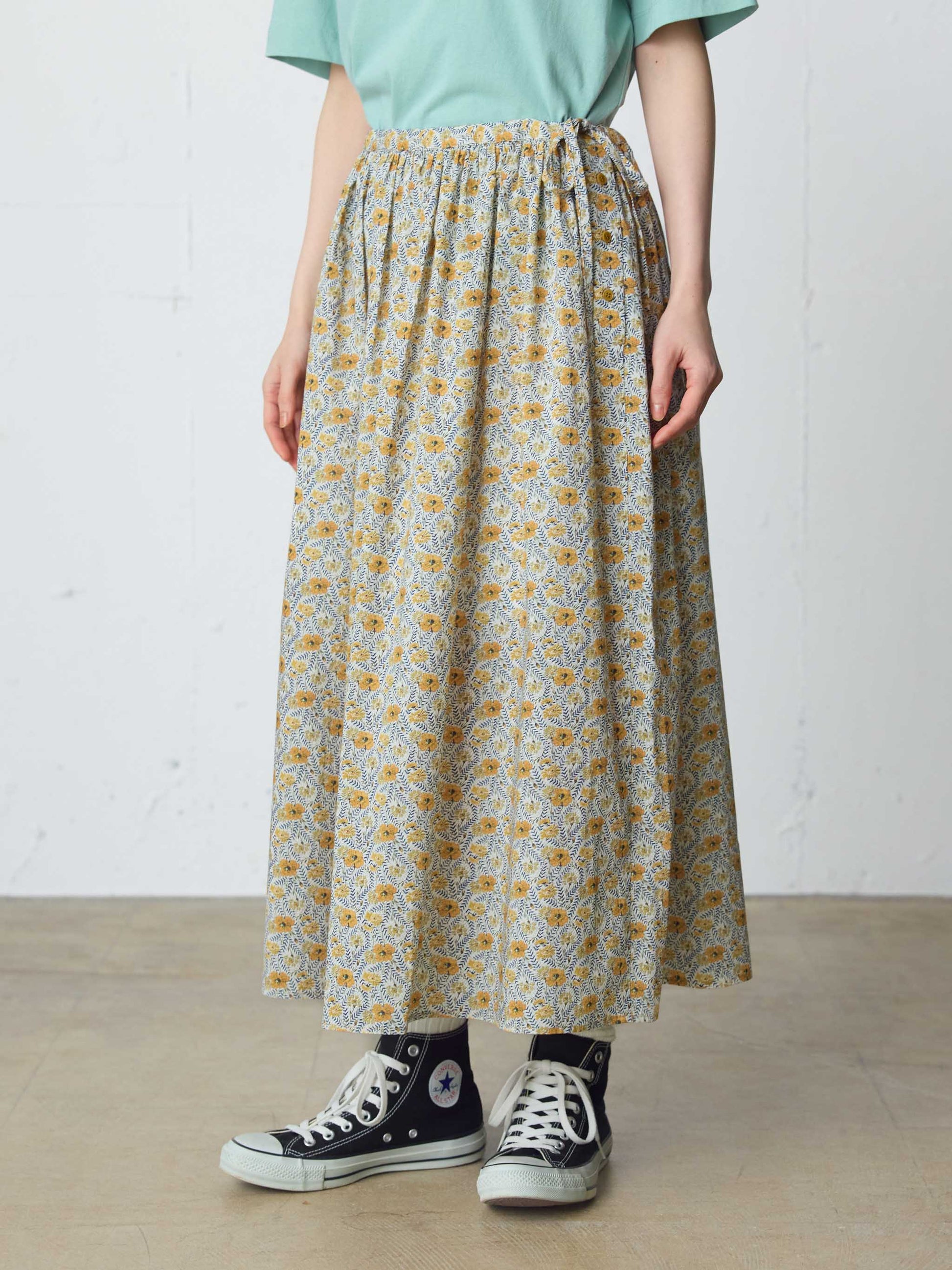 ウエストは共布のコードで調整でき、自然なギャザーがやさしい表情をつくります。