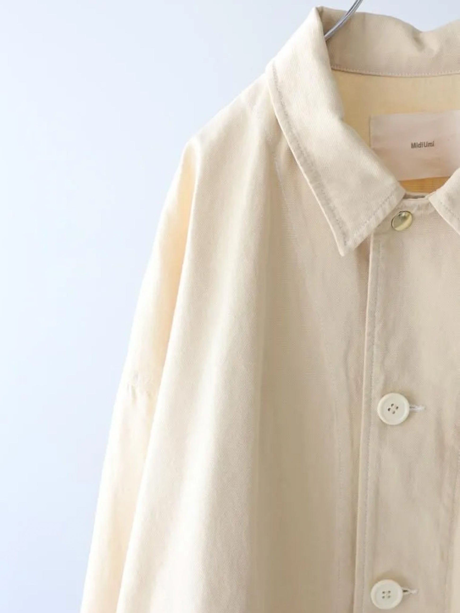 程よい厚みと柔らかさを備えながらも、丈夫で、ワークウェアにはない上品な表情を持っています。