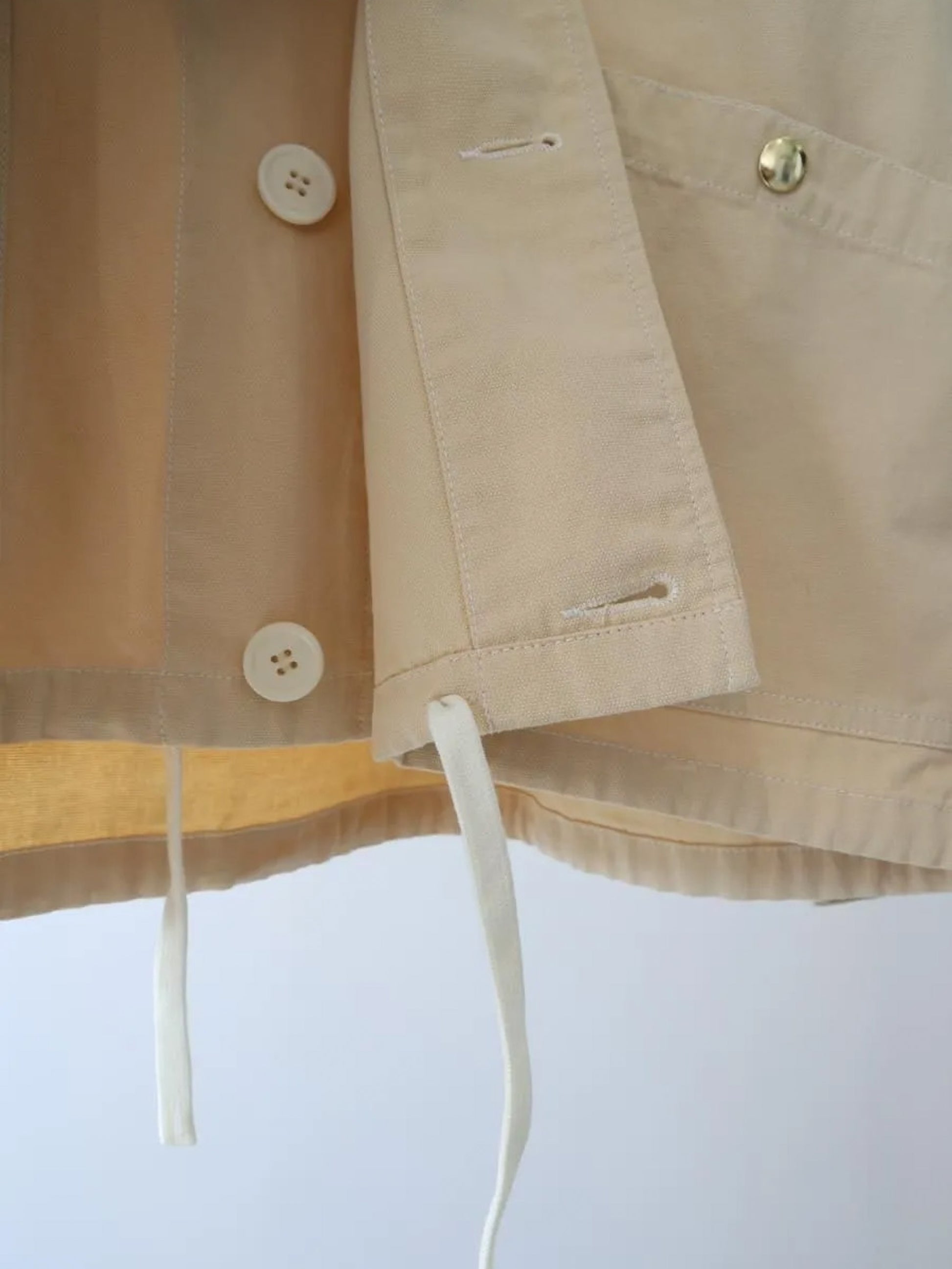 大きめのポケットや三本針ステッチ、部分的に使われたメタルボタンなど、