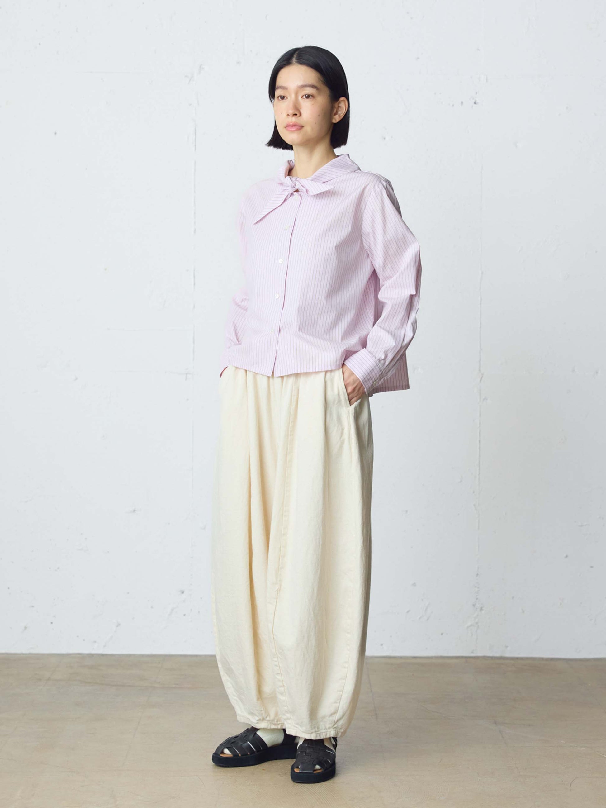 軽やかなコクーン型のワイドパンツ。