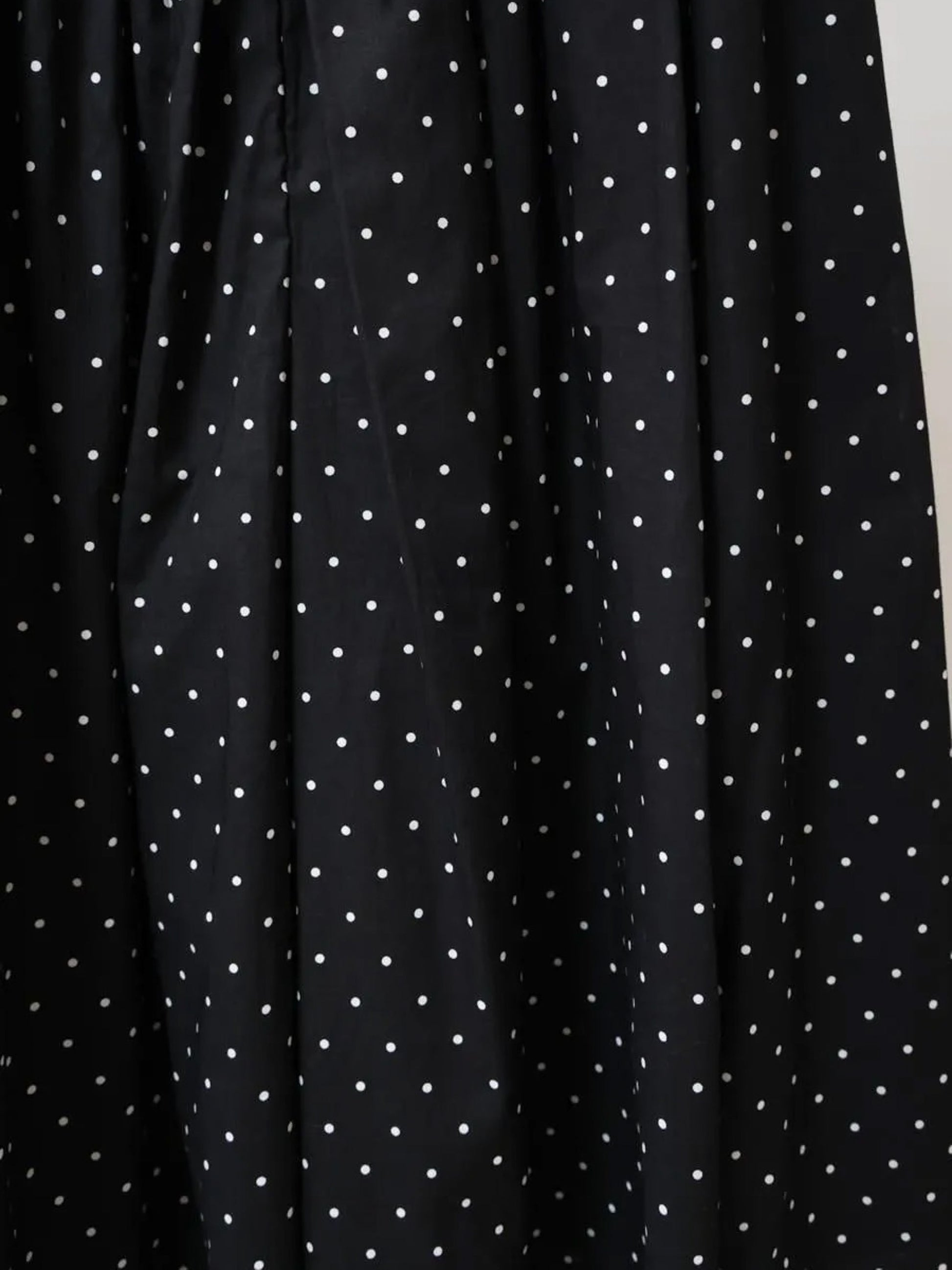 ウエスト周りにはたっぷりとギャザーを施し、ふんわりとしたボリューム感を演出。 控えめなドット柄が甘くなりすぎず、日常のスタイリングに程よく華を添える一着。 さらりとした肌ざわりで、春夏シーズンを通して快適にご着用いただけます。