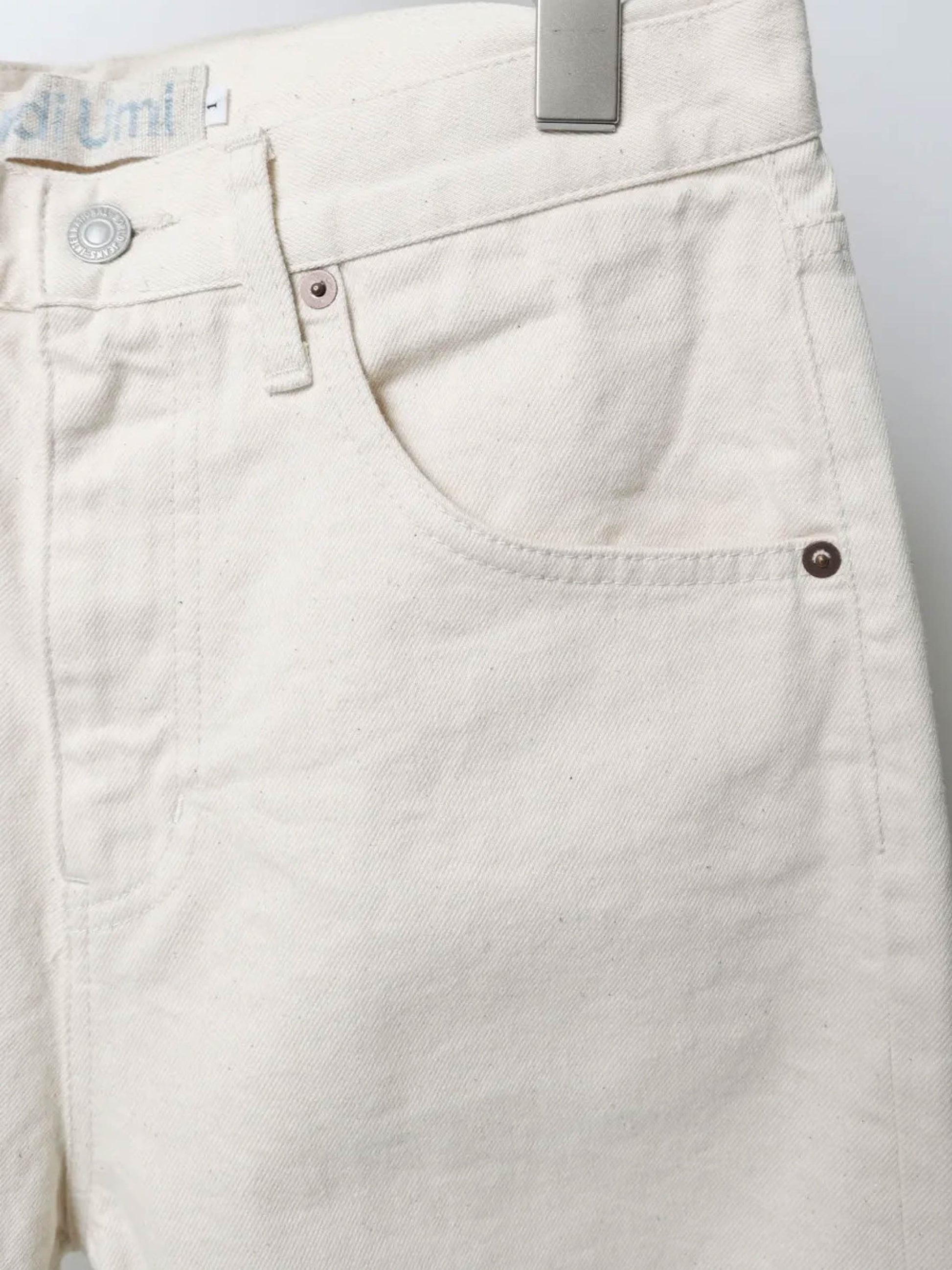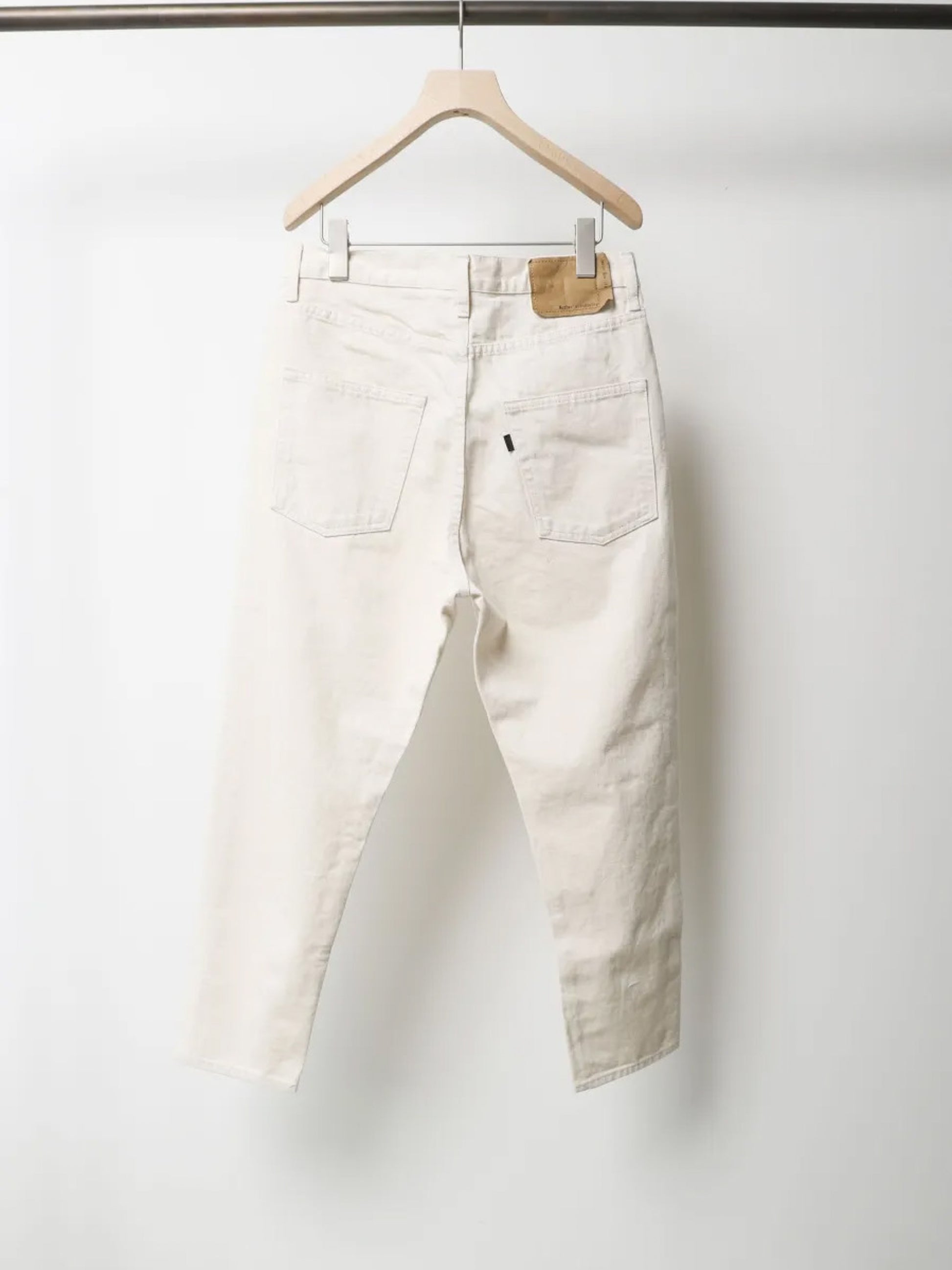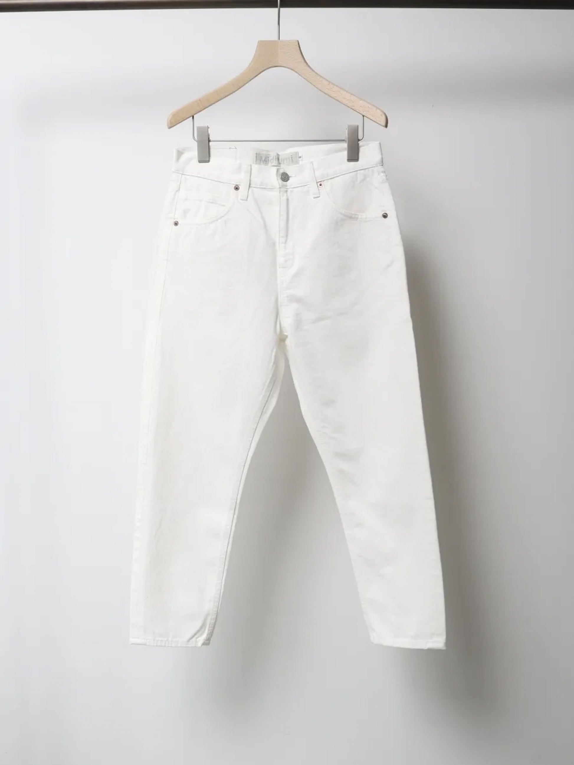 ハリコシがあり1年を通して履いていただきやすい、ほどよい厚みの12オンスデニム。 カラーはオフホワイトが白色、アイボリーがベージュに近いナチュラルな色目になります。 深い股上に、ほどよくゆとりのあるヒップ周り。