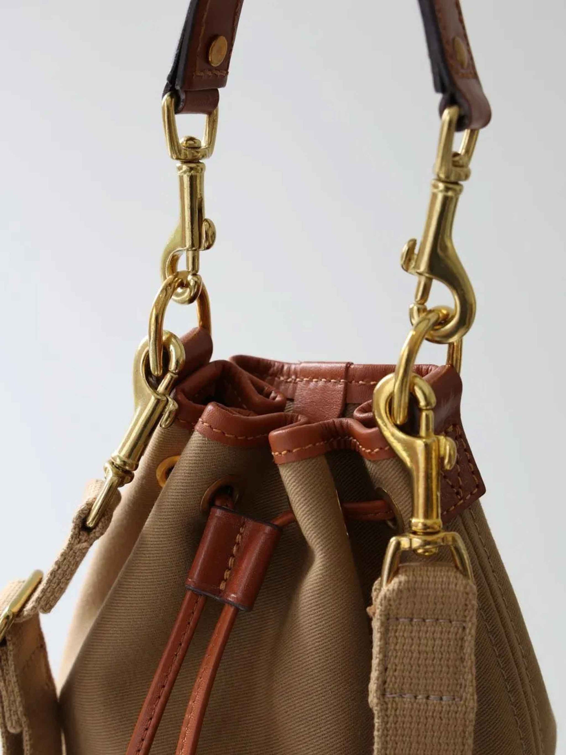 手持ちでもショルダーでも使用できる2WAY仕様の巾着型バッグ