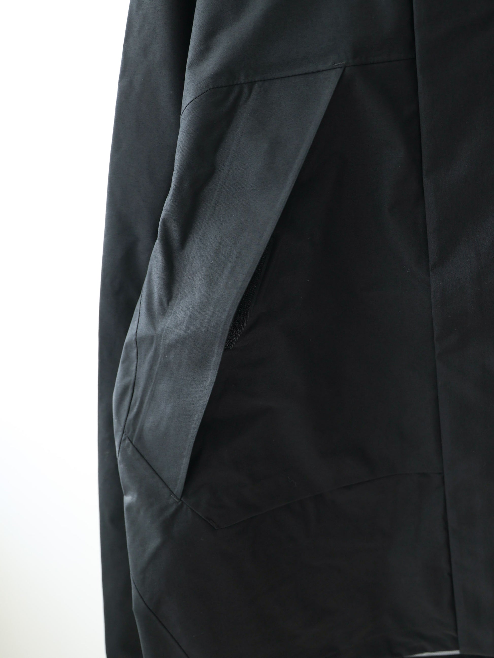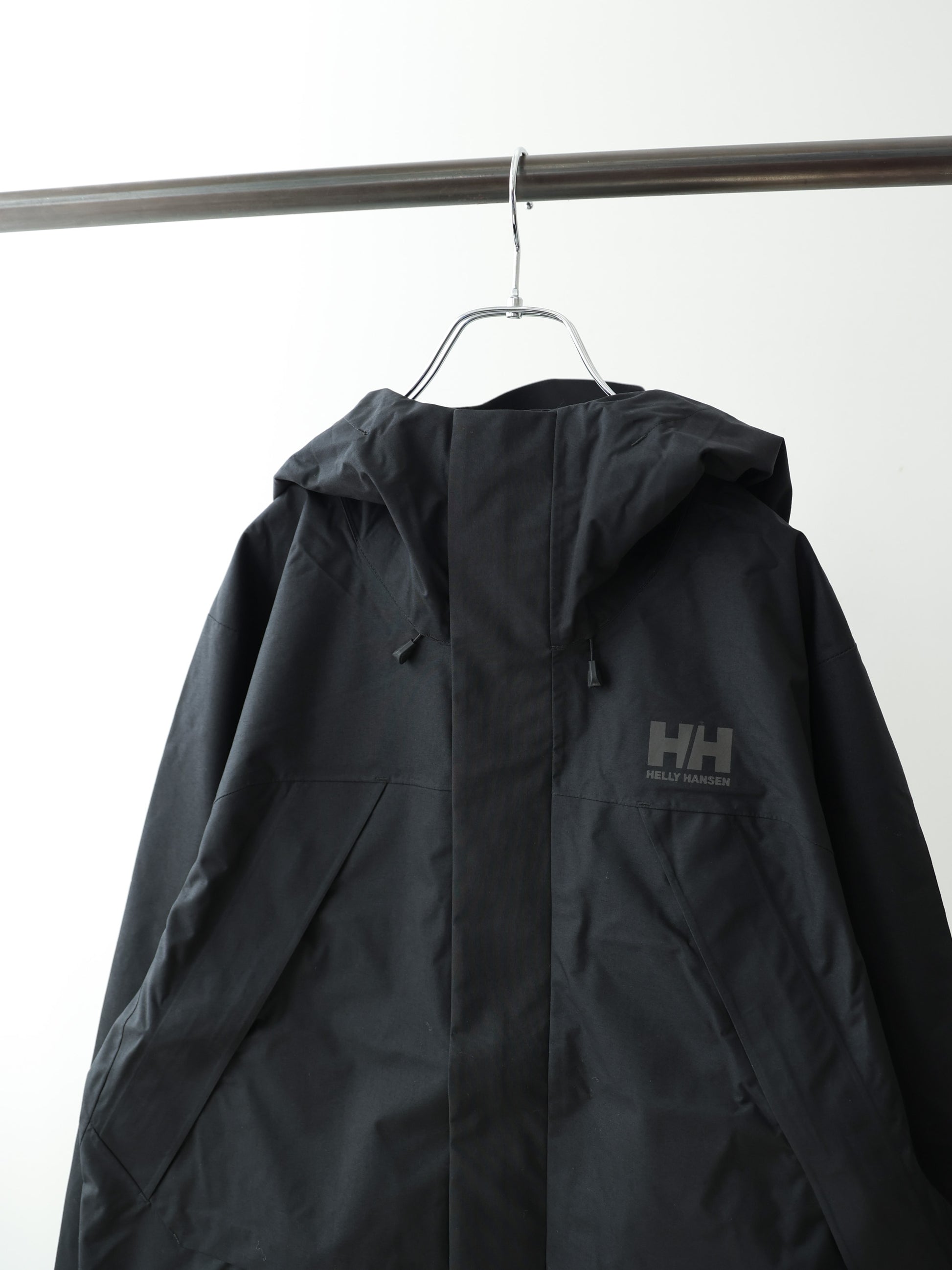 防水透湿性に優れた〈ヘリーテック®パフォーマンス〉2.5層構造の素材を採用し、 雨天時でも快適な着心地をキープします。 ややゆとりを持たせたシルエットで、レイヤリングがしやすく、 立体裁断によるスムーズな動きやすさも特徴です。