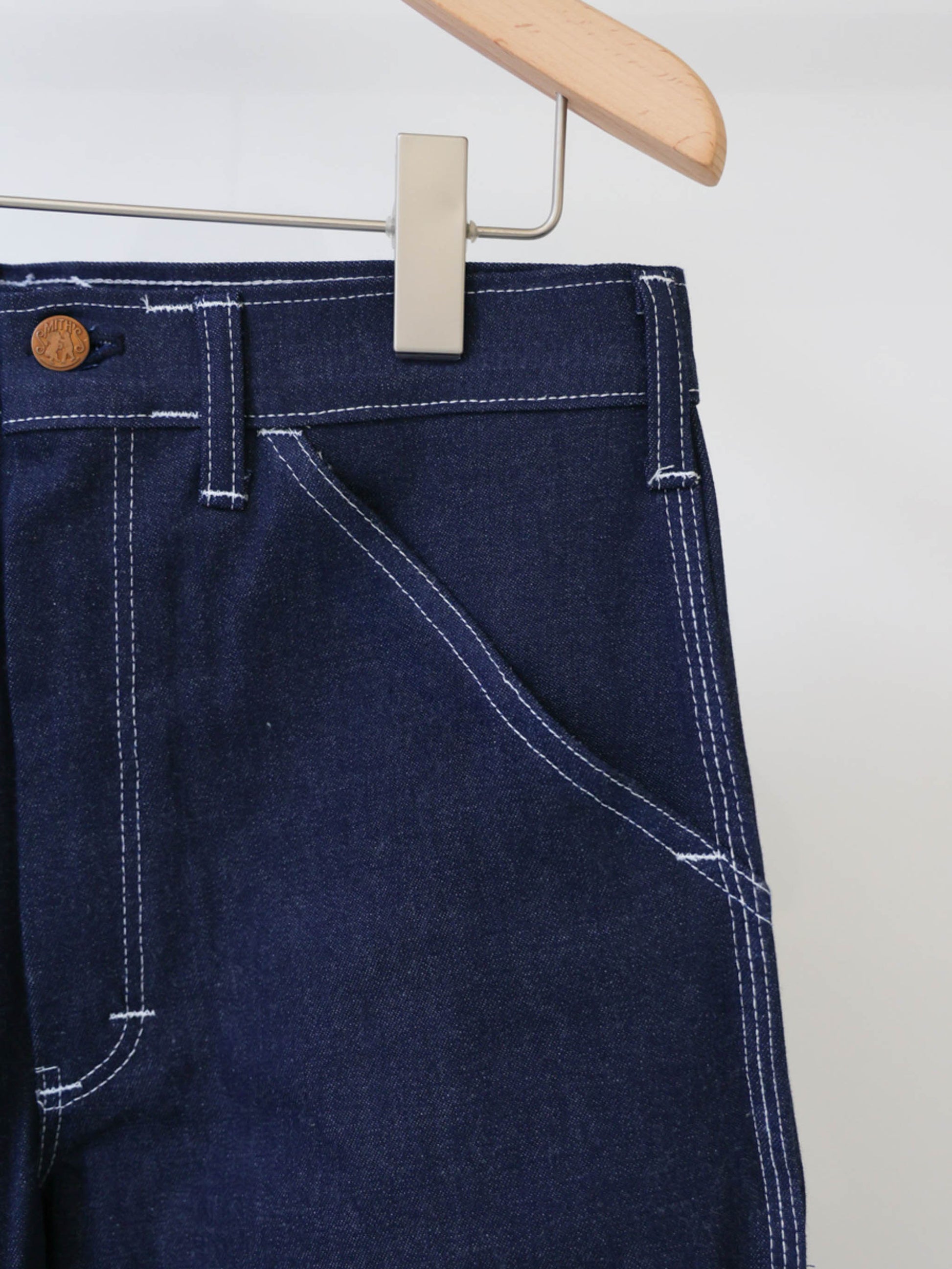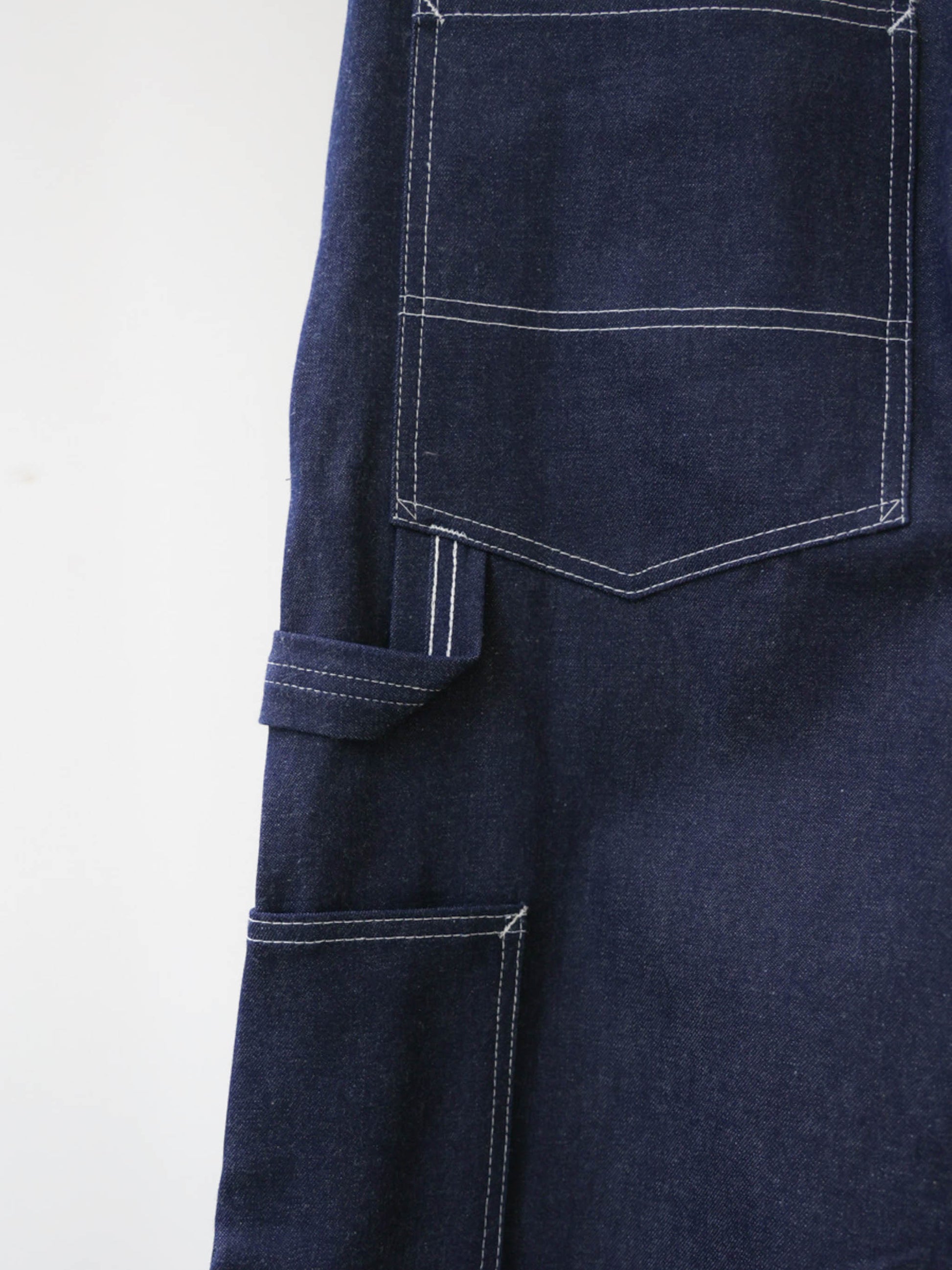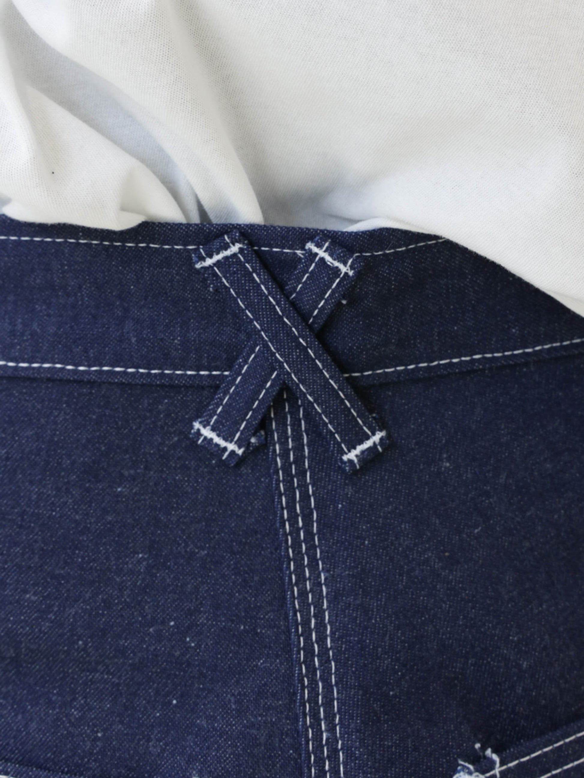丈夫で厚みのあるデニム素材を使用し、作業着ならではの ハンマーループや大きめポケット、トリプルステッチ などのディテールをそのまま再現。